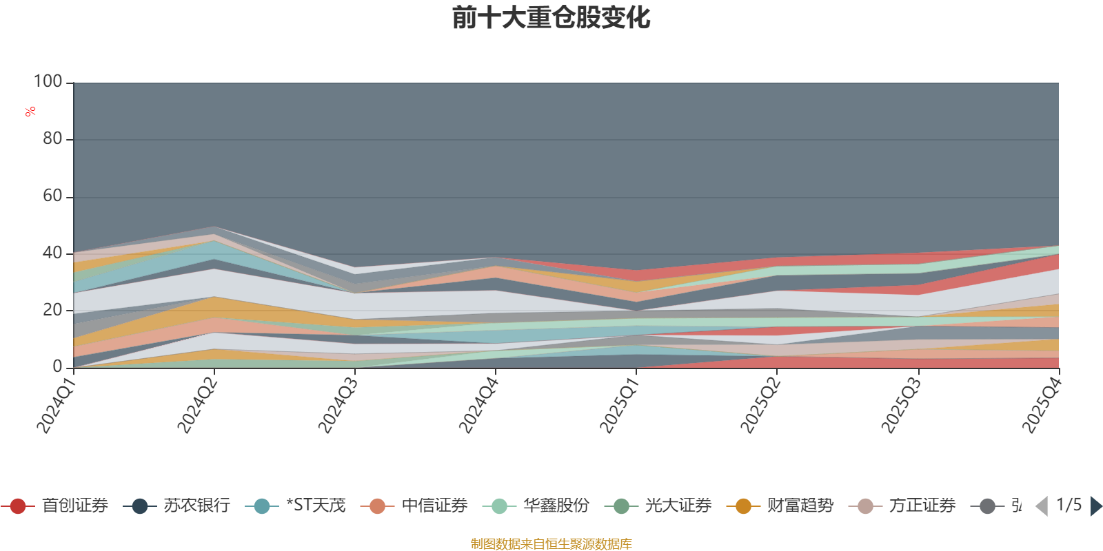 截至2025年末,基金十大重仓股分别是税友股份、大智慧、同花顺、财富趋势、南华期货、指南针、东方财富、首创证券、申万宏源、中信证券。