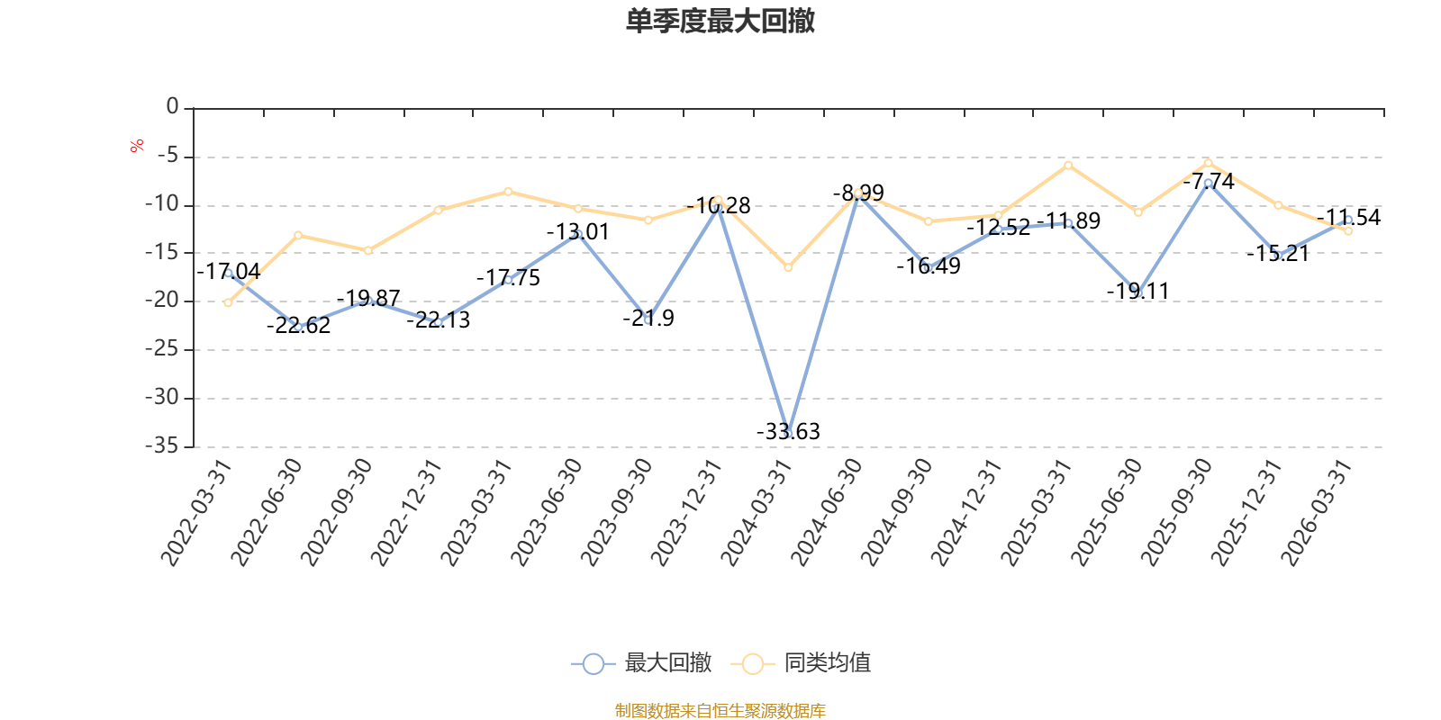 截至4月8日,基金近三年最大回撤为49.94%,同类可比基金排名537/550。单季度最大回撤出现在2024年一季度,为33.63%。