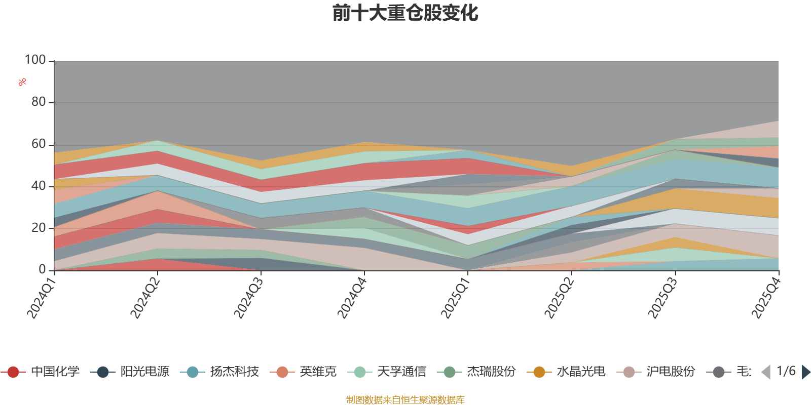 截至2025年末,基金十大重仓股分别是沪电股份、新易盛、亿纬锂能、华友钴业、中芯国际、天华新能、扬杰科技、中国平安、生益科技、潮宏基。
