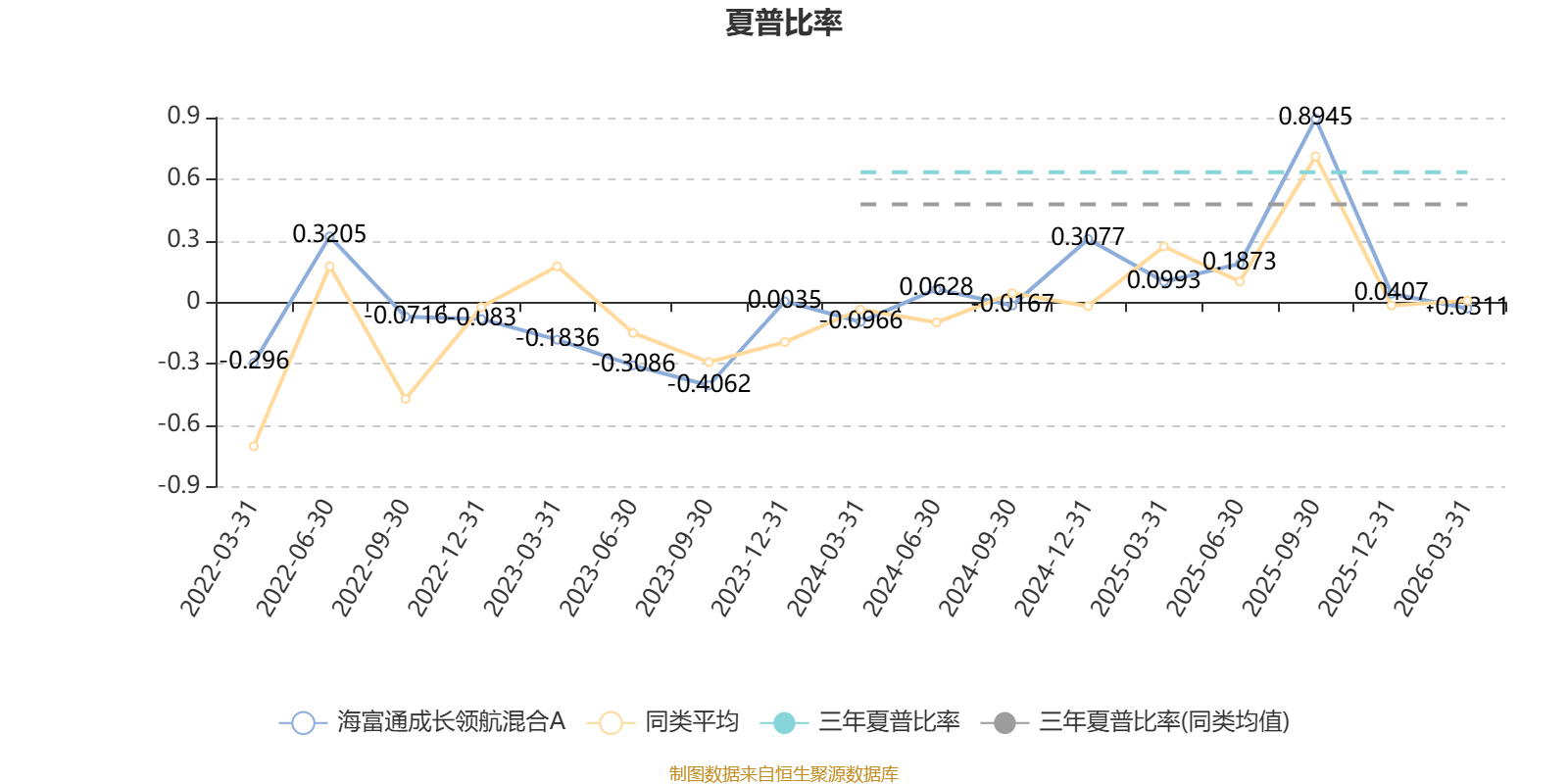截至3月31日,基金近三年夏普比率为0.633,位于同类可比基金185/550。
