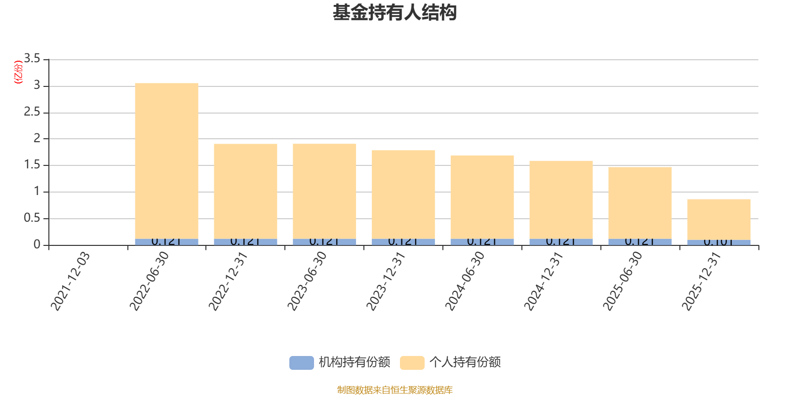 截至2025年12月31日,基金持有人共计2033户,合计持有8640.04万份。其中管理人员工持有14.2万份,占比0.16%,机构持有份额占比11.65%,个人投资者占比88.35%。