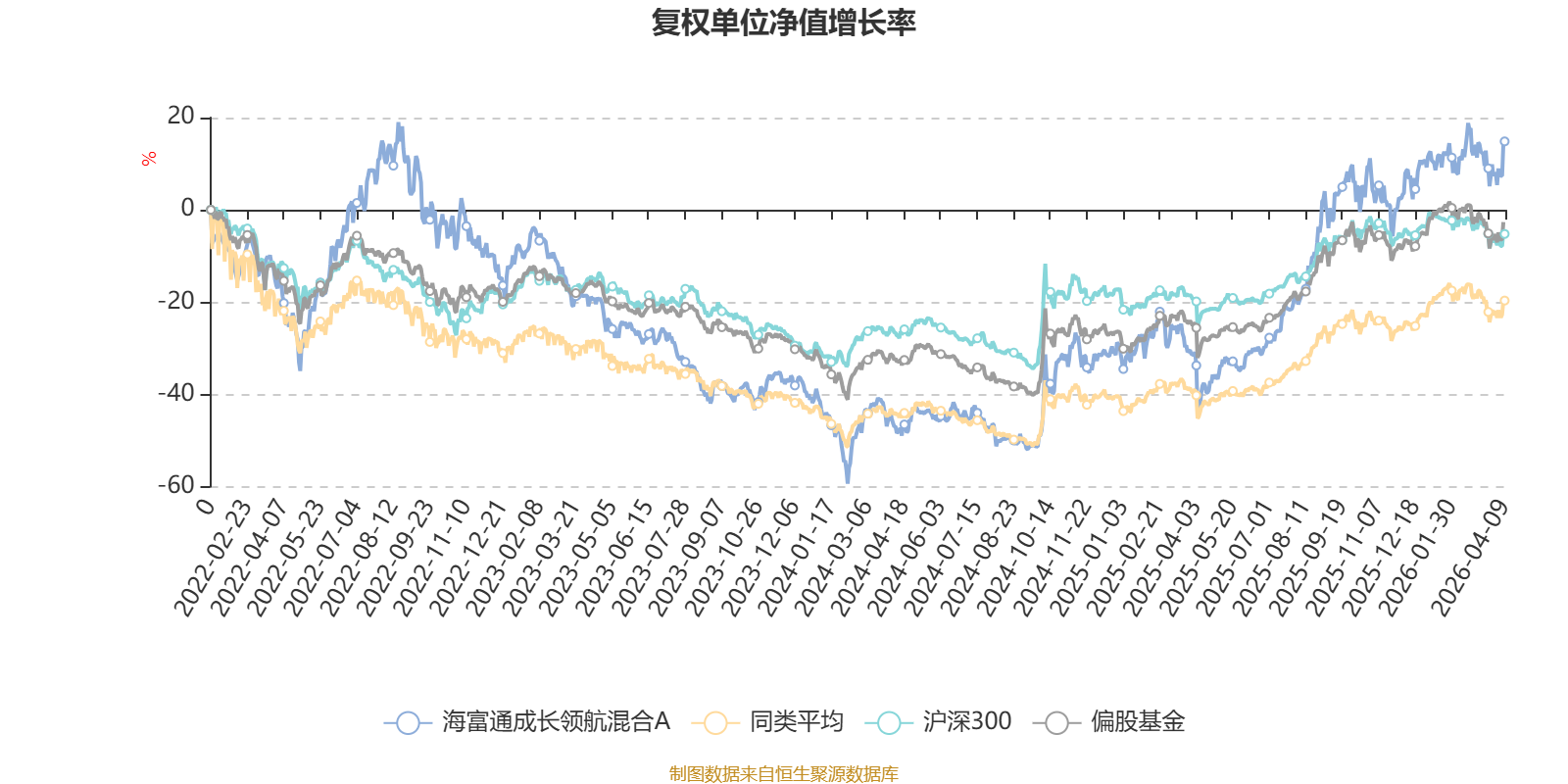 截至4月9日,海富通成长领航混合A近三个月复权单位净值增长率为3.98%,位于同类可比基金125/621;近半年复权单位净值增长率为4.63%,位于同类可比基金207/621;近一年复权单位净值增长率为99.81%,位于同类可比基金32/618;近三年复权单位净值增长率为41.55%,位于同类可比基金103/559。