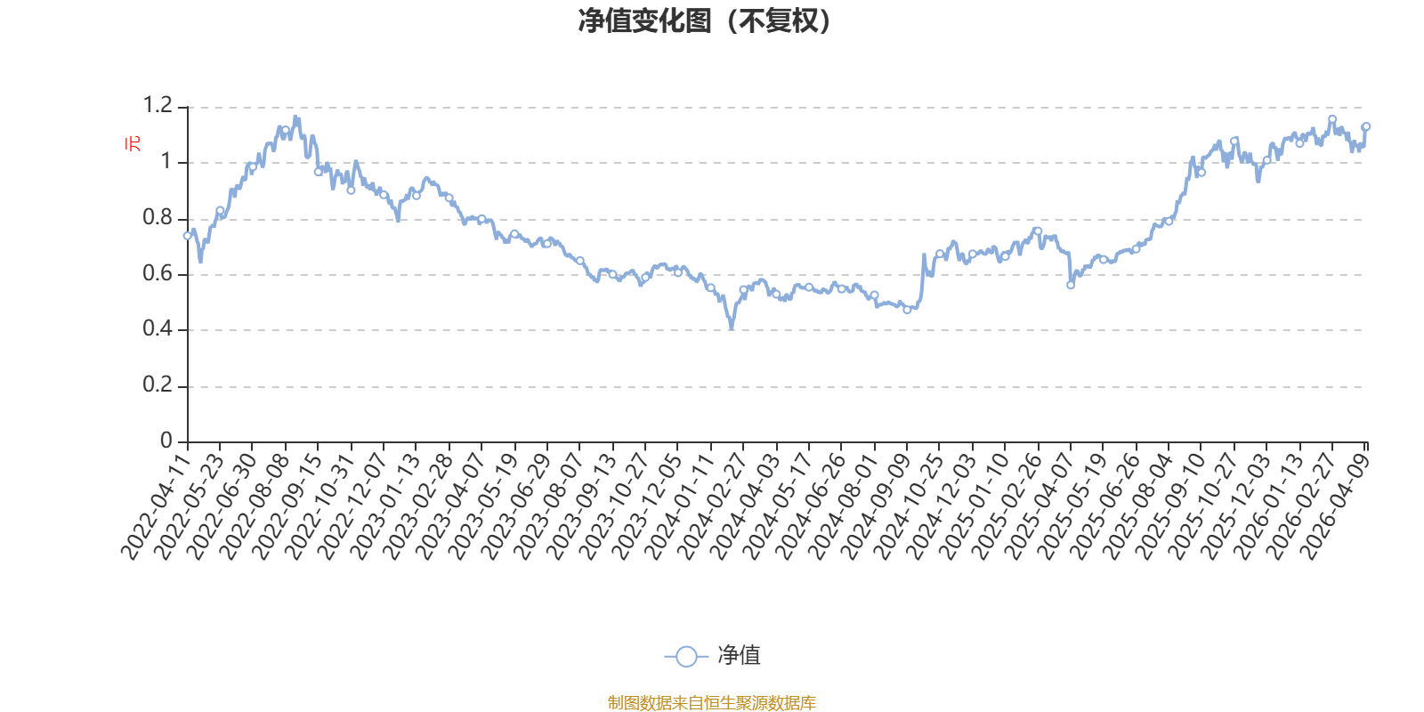 该基金属于偏股混合型基金。截至4月9日,单位净值为1.13元。基金经理是范庭芳,目前管理的3只基金近一年均为正收益。其中,截至4月9日,海富通中小盘混合近一年复权单位净值增长率最高,达103.44%;海富通碳中和混合A最低,为85.86%。