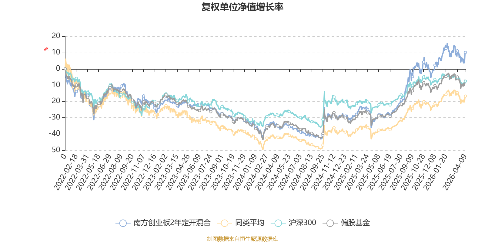 该基金属于偏股混合型基金。截至4月9日,单位净值为1.419元。基金经理是应帅,目前管理的7只基金近一年均为正收益。其中,截至4月9日,南方创业板2年定开混合近一年复权单位净值增长率最高,达68.21%;南方稳健成长混合最低,为52.46%。