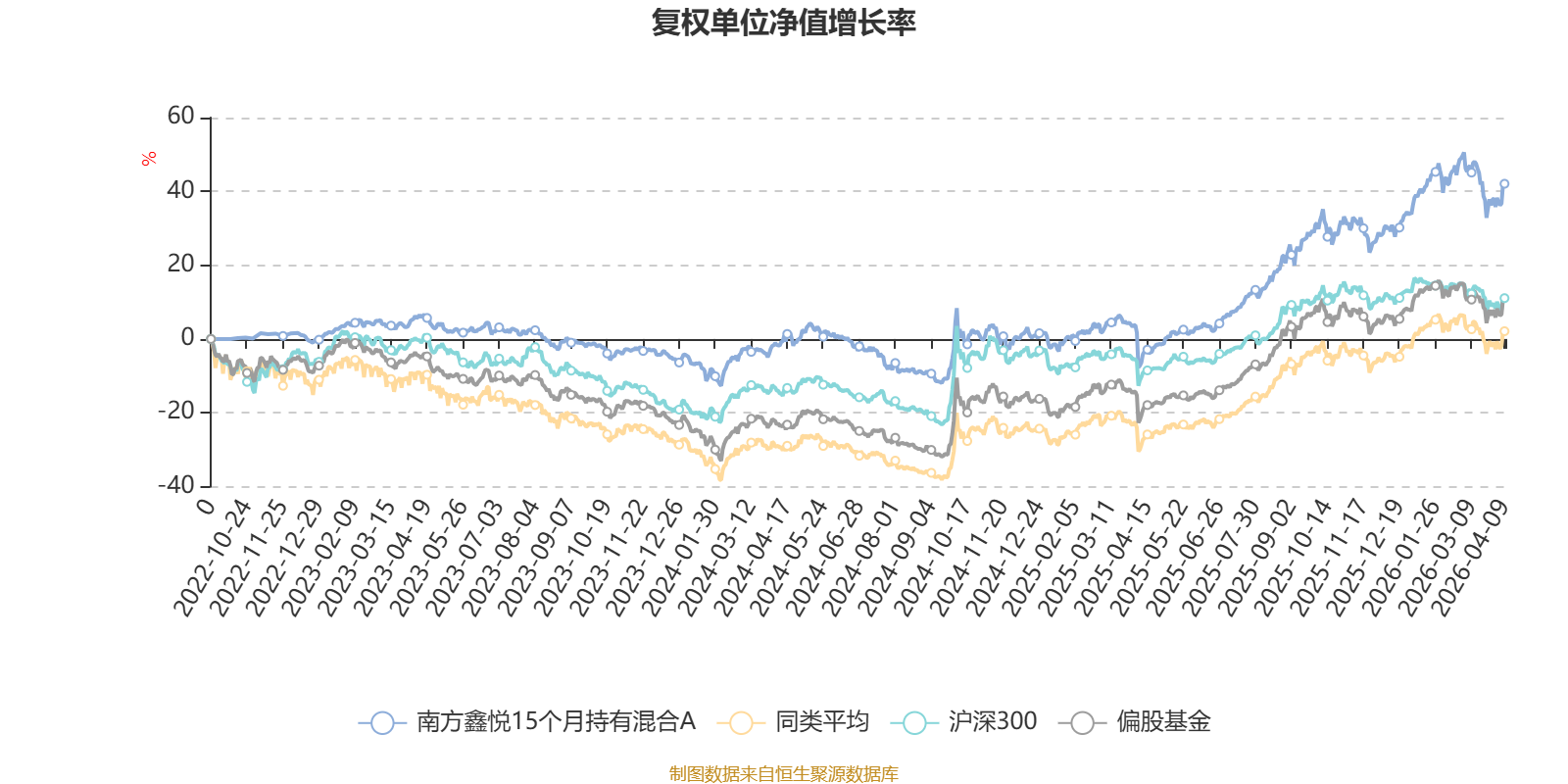 截至4月9日,南方鑫悦15个月持有混合A近三个月复权单位净值增长率为1.62%,位于同类可比基金203/621;近半年复权单位净值增长率为5.10%,位于同类可比基金196/621;近一年复权单位净值增长率为51.78%,位于同类可比基金190/618;近三年复权单位净值增长率为33.71%,位于同类可比基金144/559。