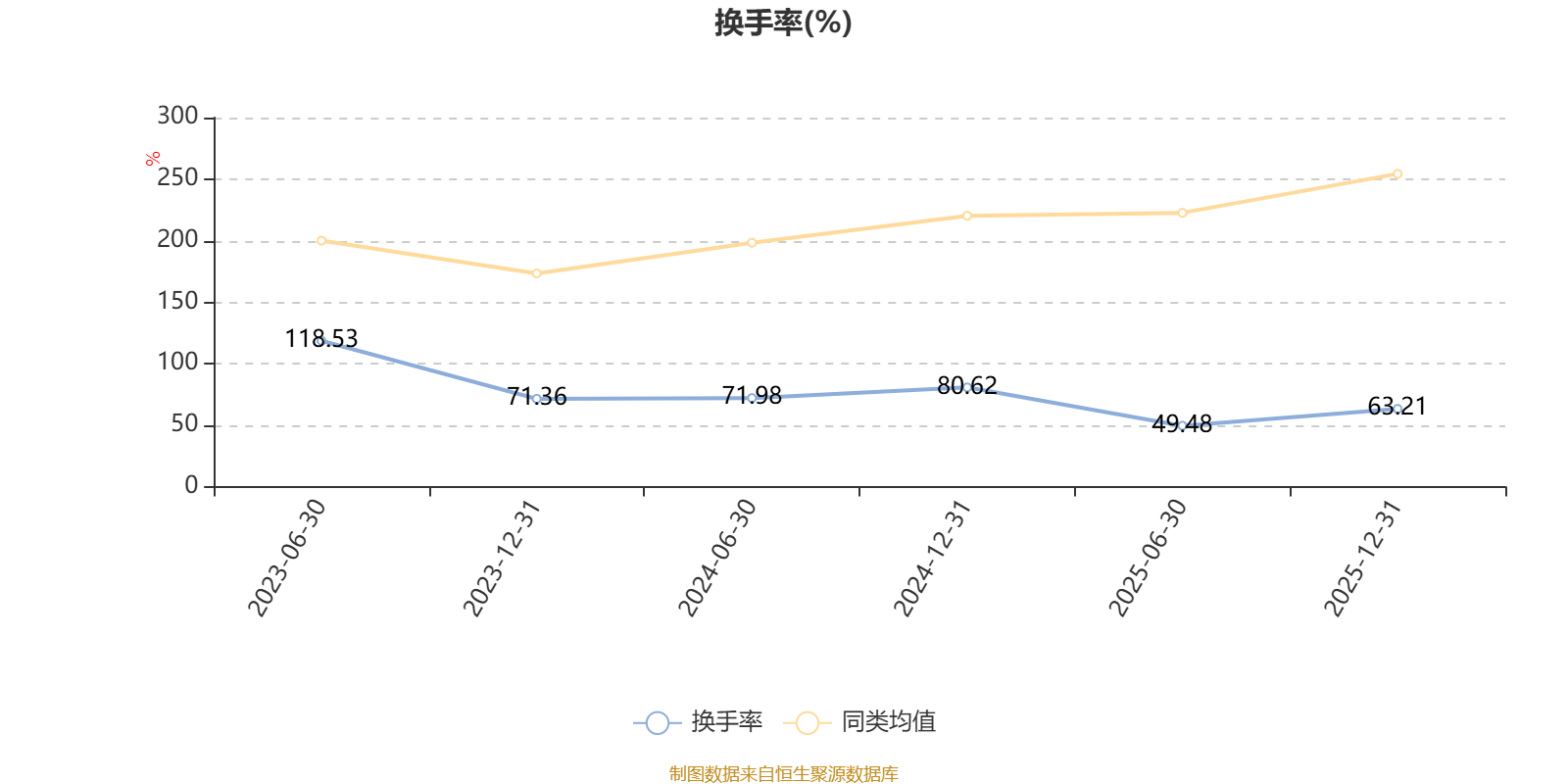 截至2025年12月31日,基金最近一年换手率约110.33%,持续低于同类均值。