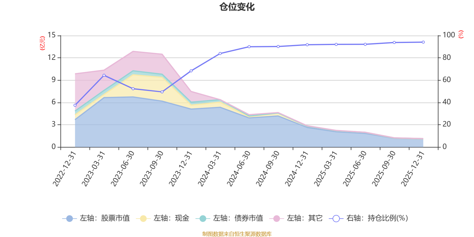 据定期报告数据统计,近三年平均股票仓位为80.21%,同类平均为85.83%。2025年末基金达到94.11%的最高仓位,2022年末最低,为37.47%。