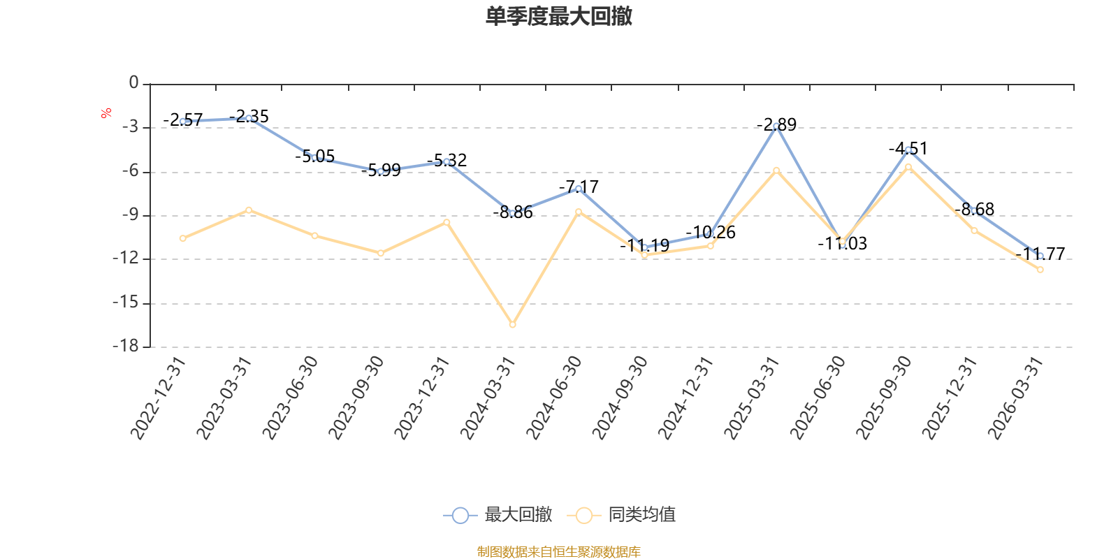 截至4月8日,基金近三年最大回撤为18.03%,同类可比基金排名15/550。单季度最大回撤出现在2026年一季度,为11.77%。