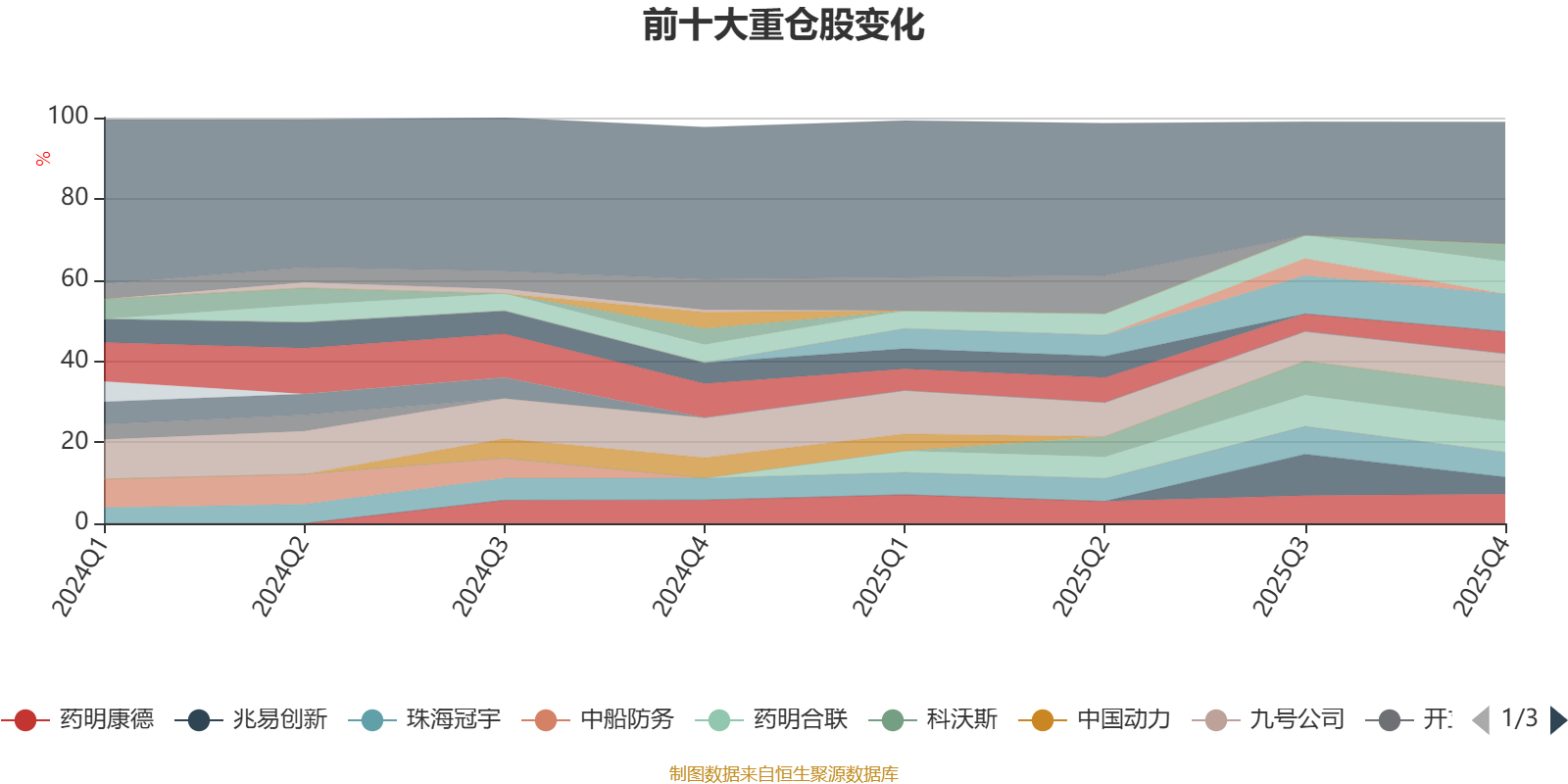 该基金持股集中度较高。截至2025年末,基金十大重仓股分别是药明生物、科沃斯、九号公司、甘李药业、药明合联、药明康德、珠海冠宇、中国船舶、圣农发展、兆易创新。