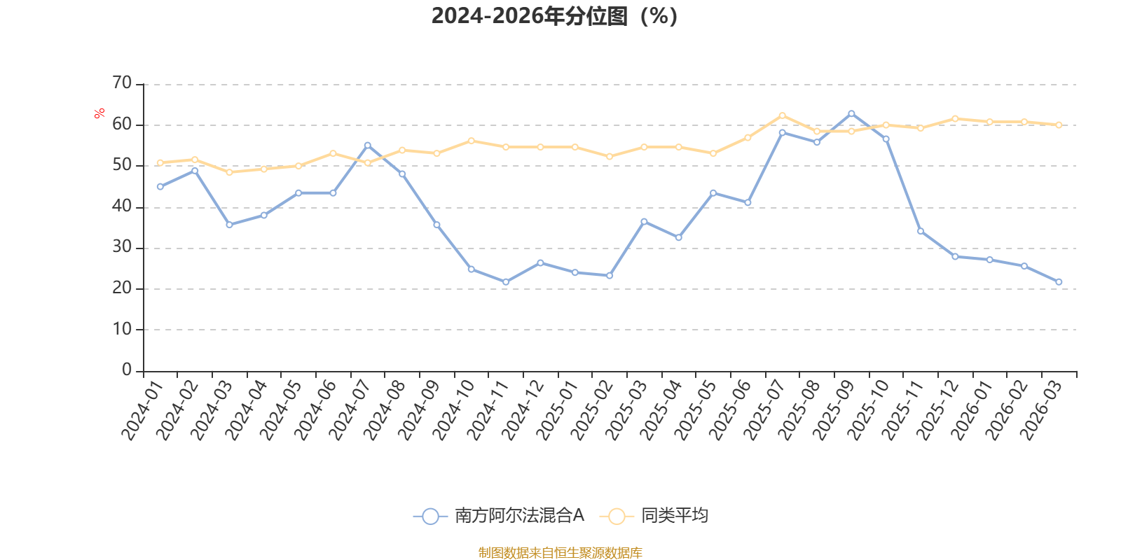 通过所选区间该基金净值增长率分位图,可以观察该基金与同类基金业绩比较情况。图为坐标原点到区间内某时点的净值增长率在同类基金中的分位数。