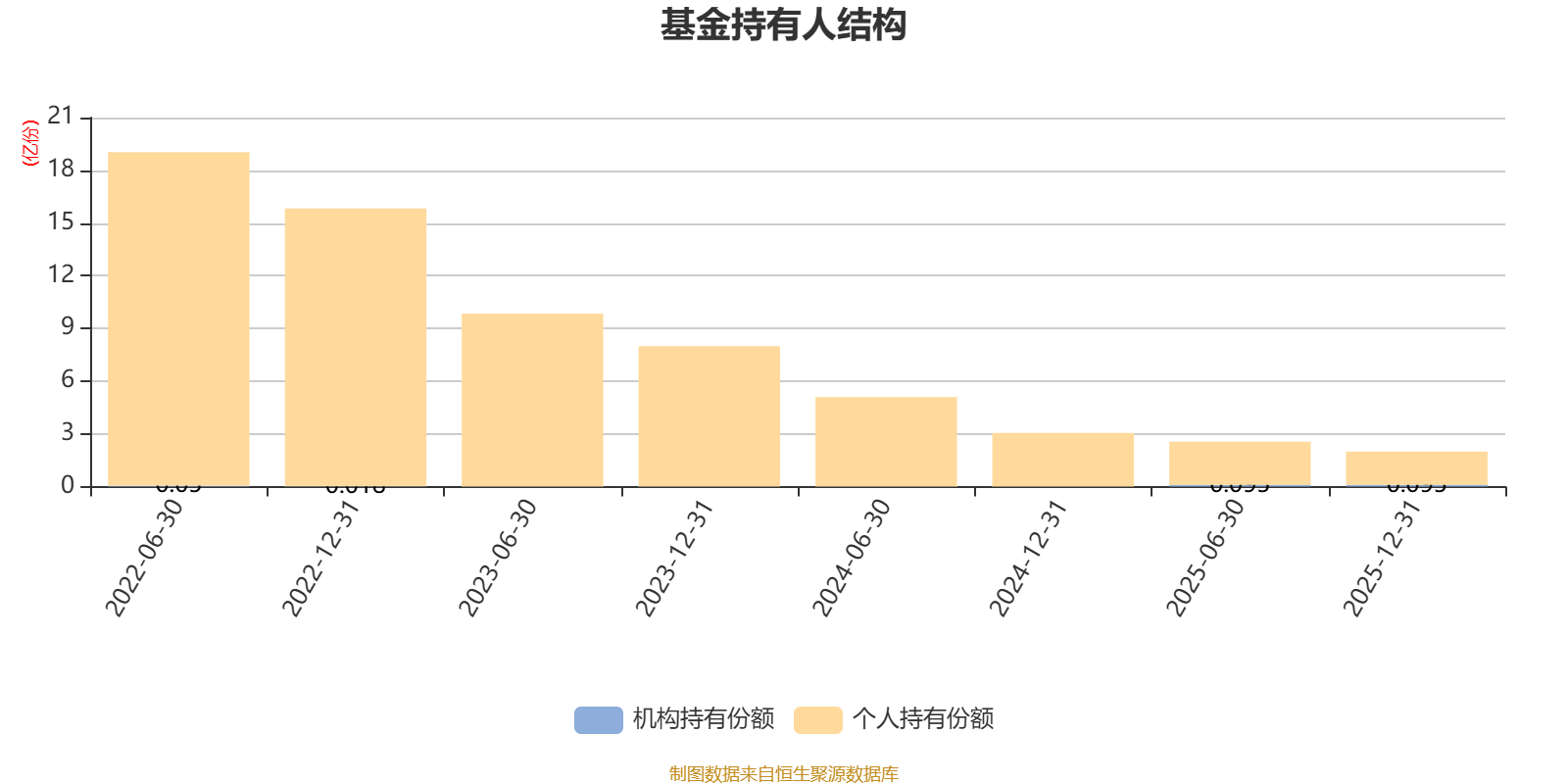 截至2025年12月31日,基金持有人共计2372户,合计持有1.99亿份。其中管理人员工持有297.49万份,占比1.50%,机构持有份额占比4.78%,个人投资者占比95.22%。