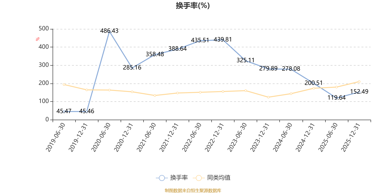 截至2025年12月31日,基金最近一年换手率约266.39%,持续1年低于同类均值。
