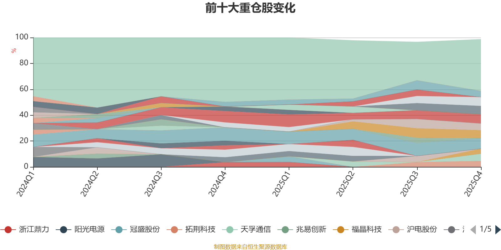 截至2025年末,基金重仓股分别是宁德时代、道通科技、中际旭创、生益科技、安集科技、天孚通信、华虹半导体、中芯国际、拓荆科技、福晶科技、华虹公司。