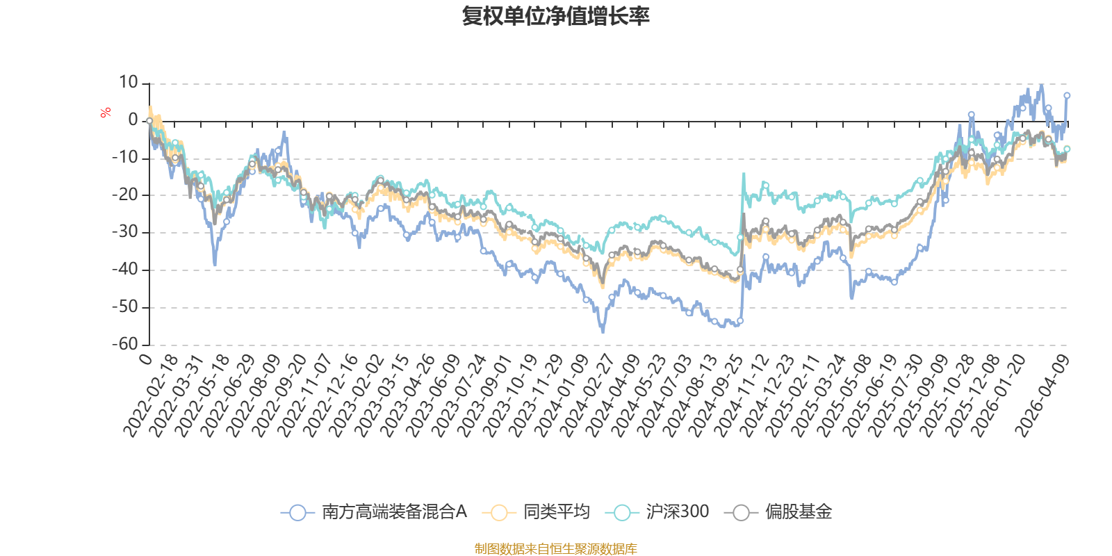 截至4月9日,南方高端装备混合A近三个月复权单位净值增长率为3.25%,位于同类可比基金58/265;近半年复权单位净值增长率为7.73%,位于同类可比基金63/265;近一年复权单位净值增长率为99.86%,位于同类可比基金11/265;近三年复权单位净值增长率为46.30%,位于同类可比基金28/261。