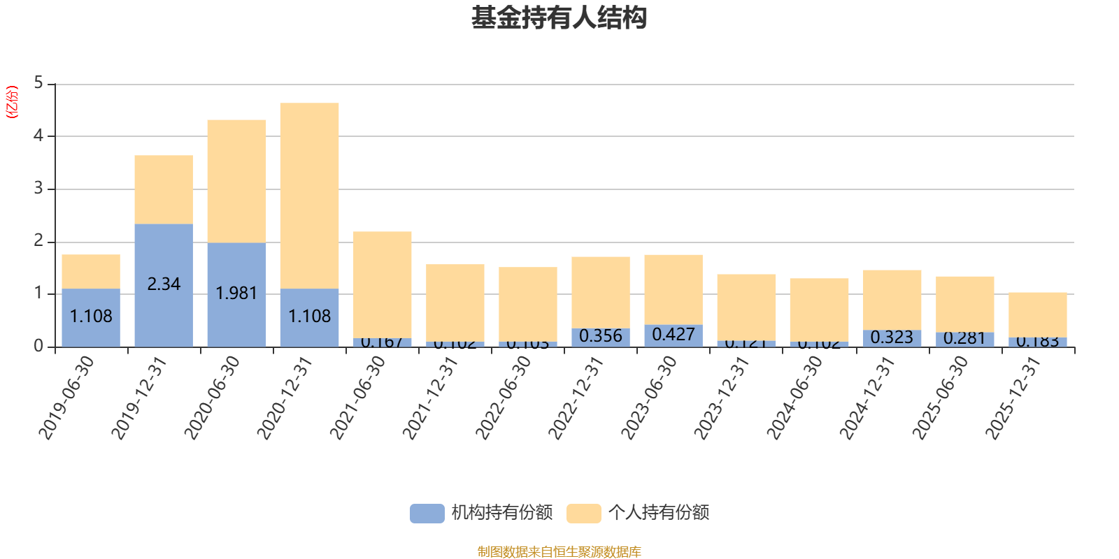 截至2025年12月31日,基金持有人共计2.02万户,合计持有1.03亿份。其中管理人员工持有61.75万份,占比0.60%,机构持有份额占比17.65%,个人投资者占比82.35%。