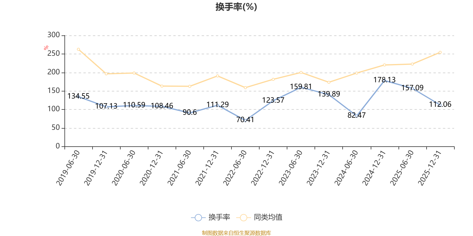 截至2025年12月31日,基金最近一年换手率约272.54%,持续低于同类均值。