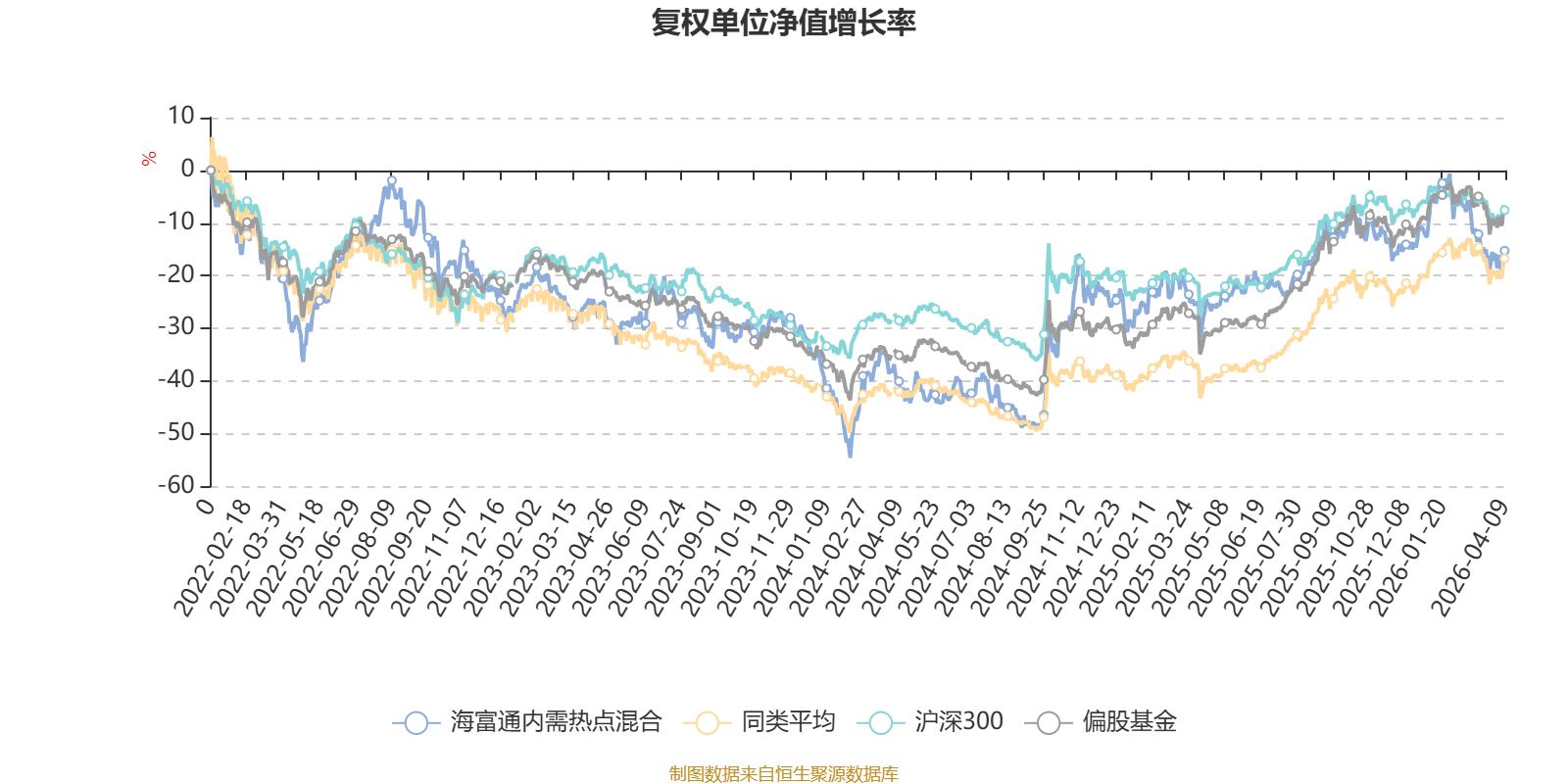 截至4月9日,海富通内需热点混合近三个月复权单位净值增长率为-10.70%,位于同类可比基金577/621;近半年复权单位净值增长率为-8.21%,位于同类可比基金515/621;近一年复权单位净值增长率为19.39%,位于同类可比基金490/618;近三年复权单位净值增长率为12.15%,位于同类可比基金297/559。