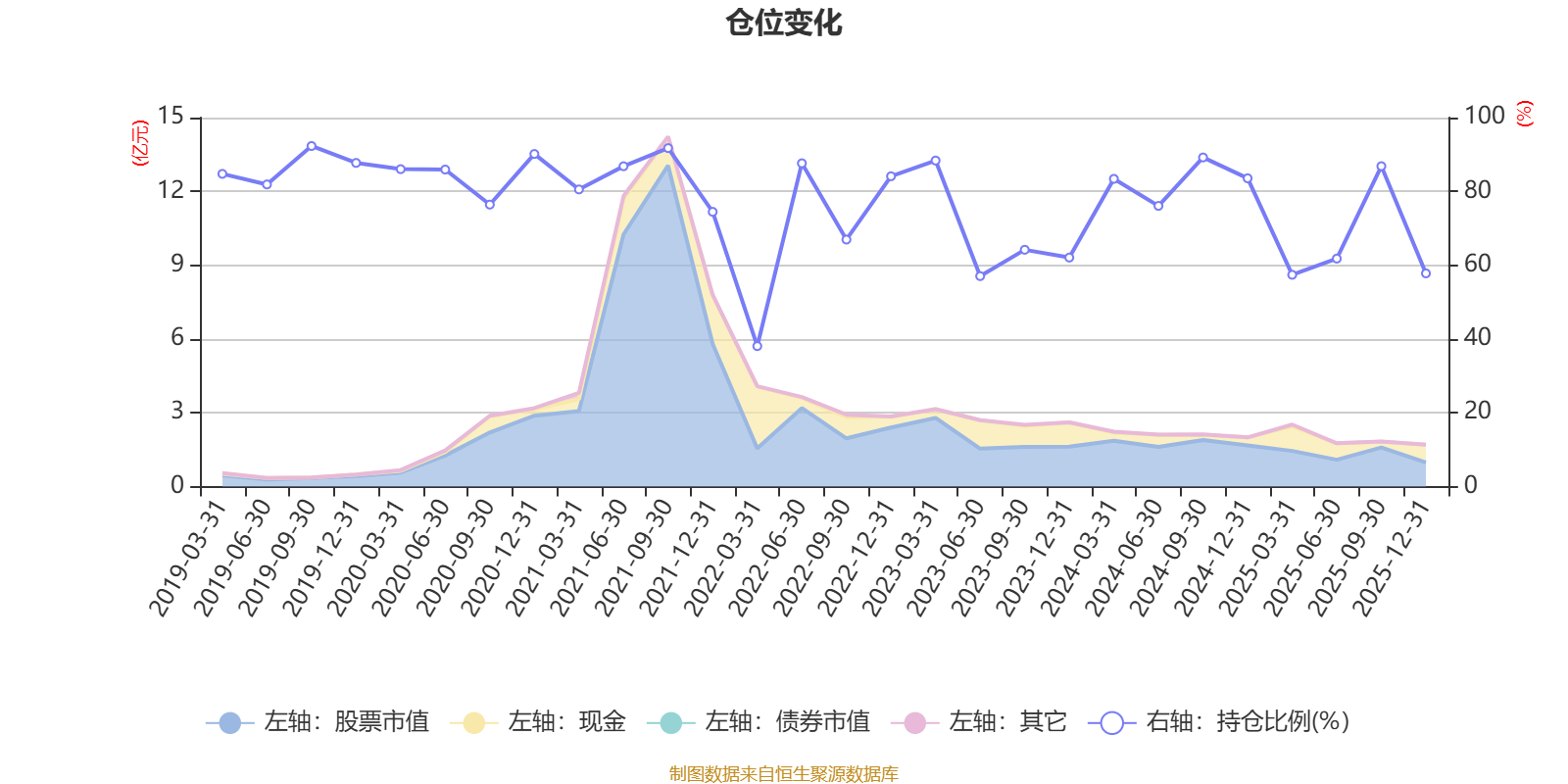 据定期报告数据统计,近三年平均股票仓位为72.31%,同类平均为72.57%。2019年三季度末基金达到92.3%的最高仓位,2022年一季度末最低,为38.07%。