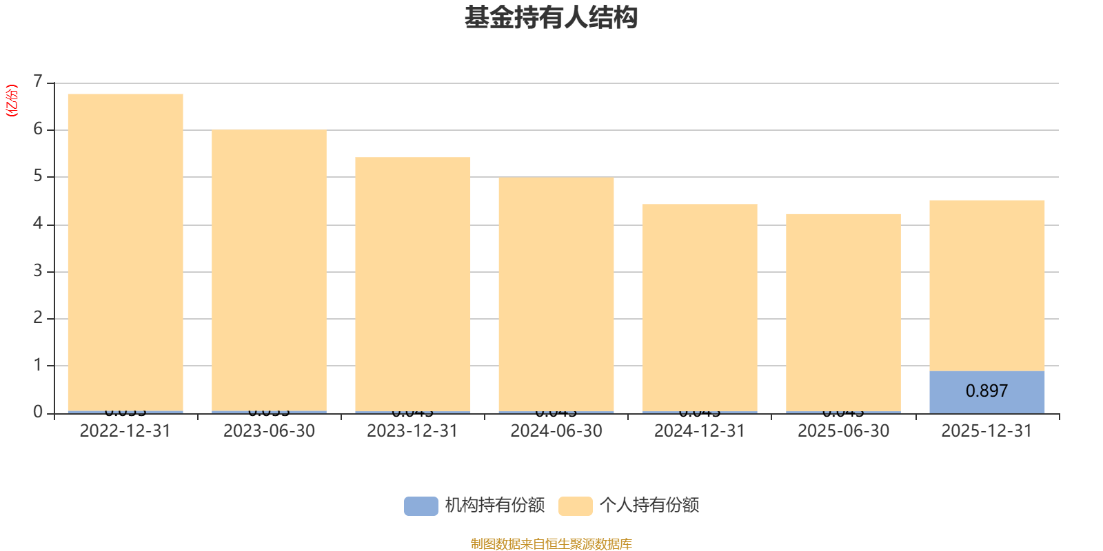 截至2025年12月31日,基金持有人共计3464户,合计持有4.51亿份。其中管理人员工持有2.99万份,占比0.01%,机构持有份额占比19.91%,个人投资者占比80.09%。