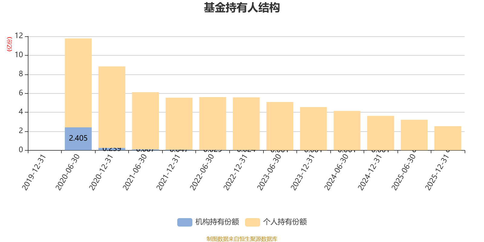 截至2025年12月31日,基金持有人共计1.09万户,合计持有2.53亿份。其中管理人员工持有281.3份,机构持有份额占比0.00%,个人投资者占比100.00%。