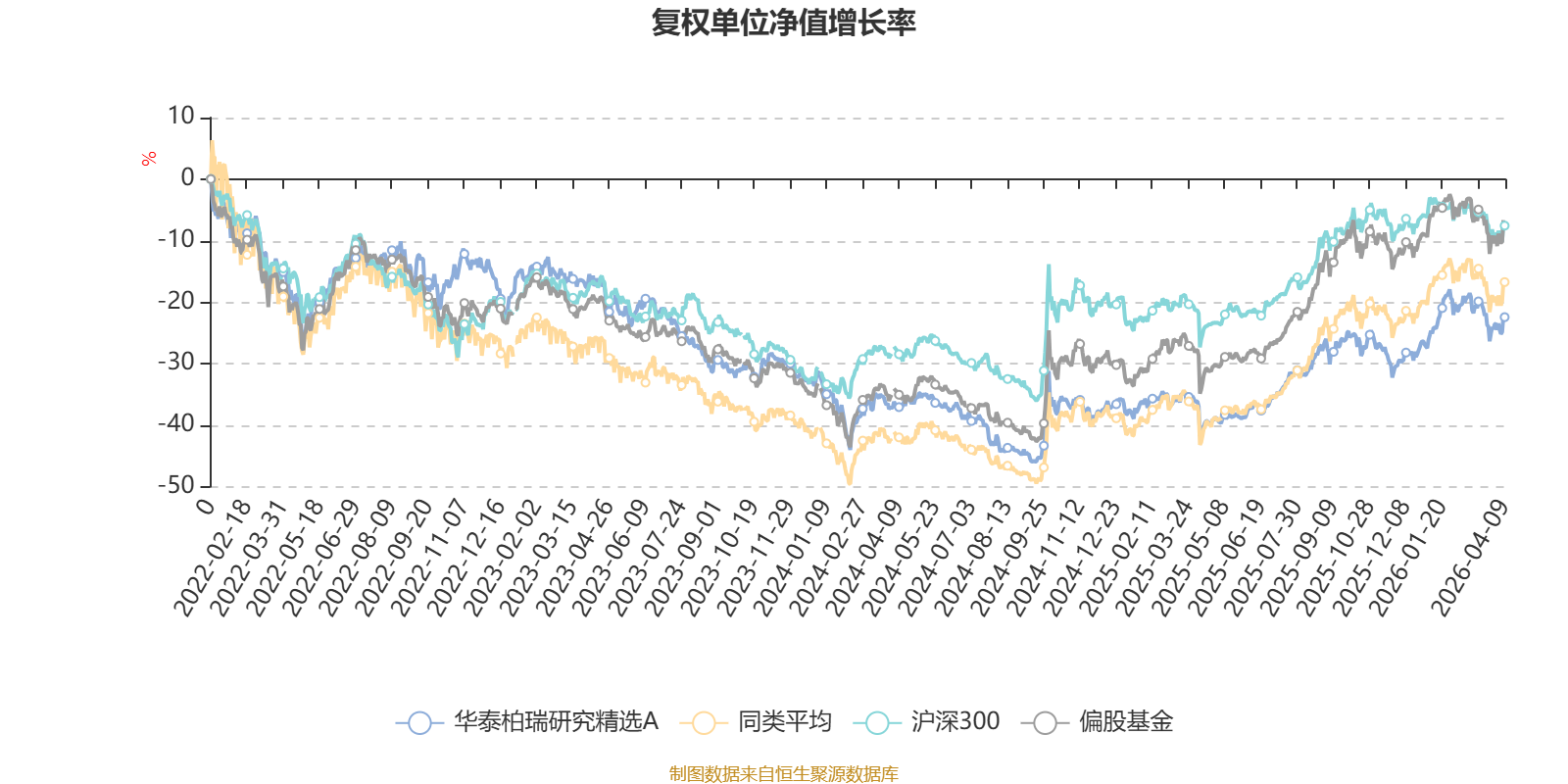 截至4月9日,华泰柏瑞研究精选A近三个月复权单位净值增长率为2.27%,位于同类可比基金180/621;近半年复权单位净值增长率为3.63%,位于同类可比基金231/621;近一年复权单位净值增长率为31.59%,位于同类可比基金389/618;近三年复权单位净值增长率为-8.02%,位于同类可比基金478/559。