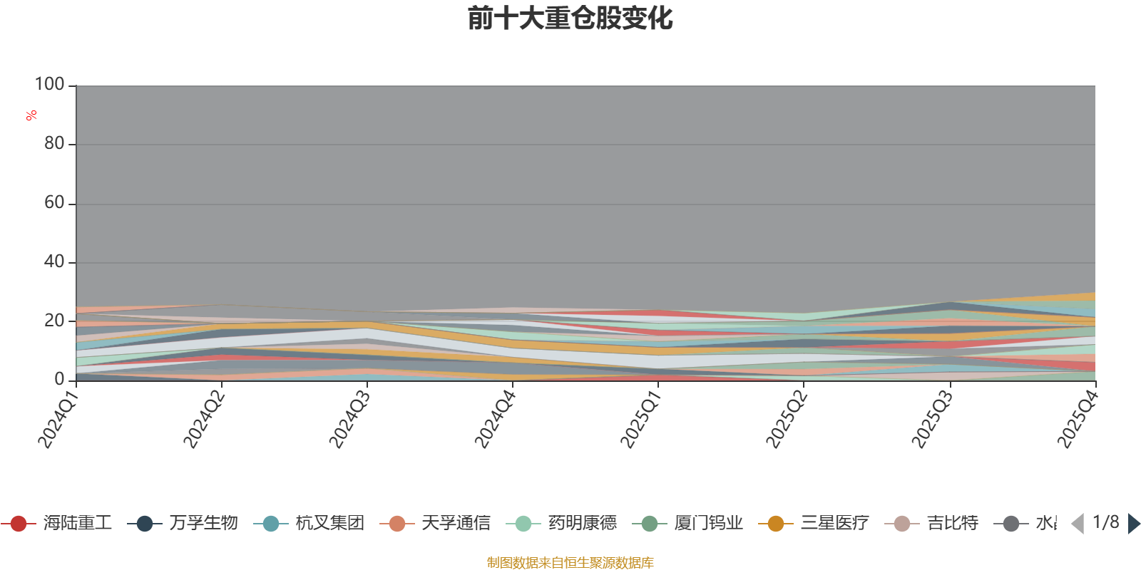 截至2025年末,基金十大重仓股分别是隆鑫通用、思源电气、厦门钨业、华新建材、科士达、利安隆、广电计量、欧科亿、中国人寿、利尔化学。