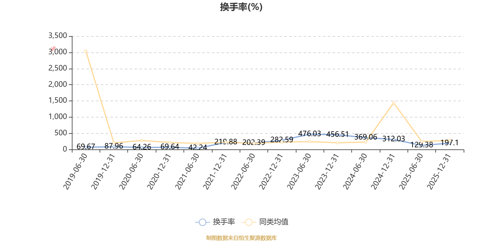 截至2025年12月31日,基金最近一年换手率约330.52%,持续1年低于同类均值。