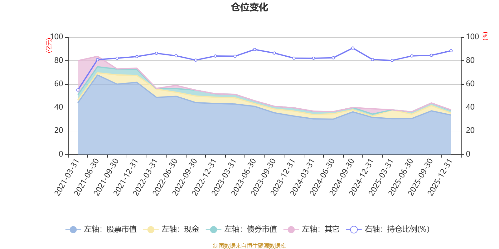 据定期报告数据统计,近三年平均股票仓位为84.73%,同类平均为88.36%。2024年三季度末基金达到90.86%的最高仓位,2021年一季度末最低,为55.07%。