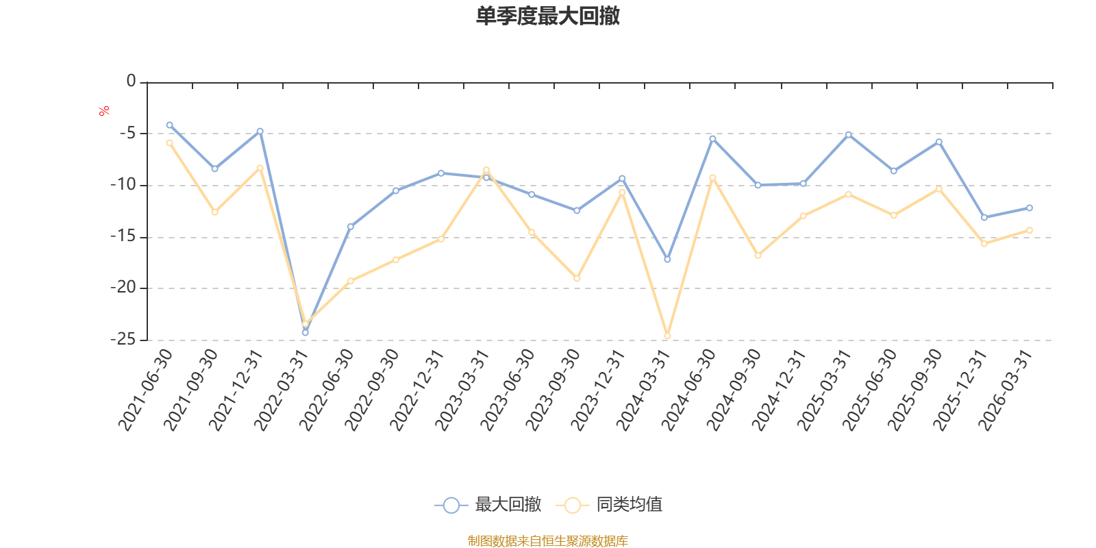 截至4月8日,基金近三年最大回撤为30.36%,同类可比基金排名1/53。单季度最大回撤出现在2022年一季度,为24.27%。