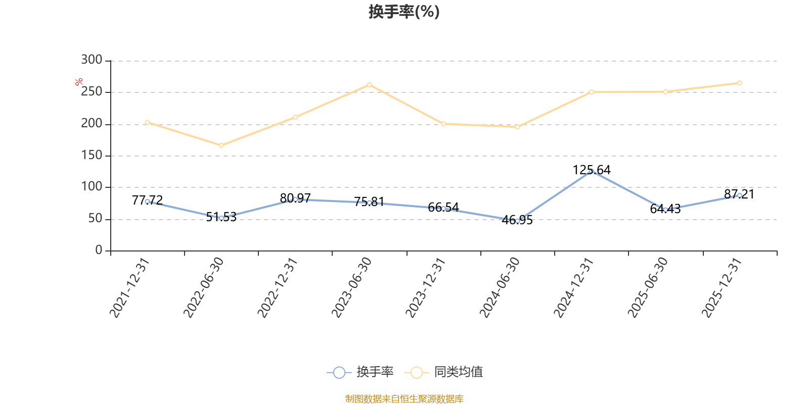 截至2025年12月31日,基金最近一年换手率约151.03%,持续低于同类均值。