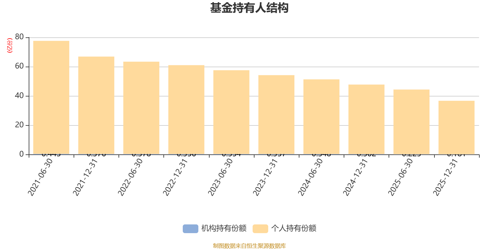 截至2025年12月31日,基金持有人共计12.81万户,合计持有36.7亿份。其中管理人员工持有11.93万份,机构持有份额占比0.49%,个人投资者占比99.51%。