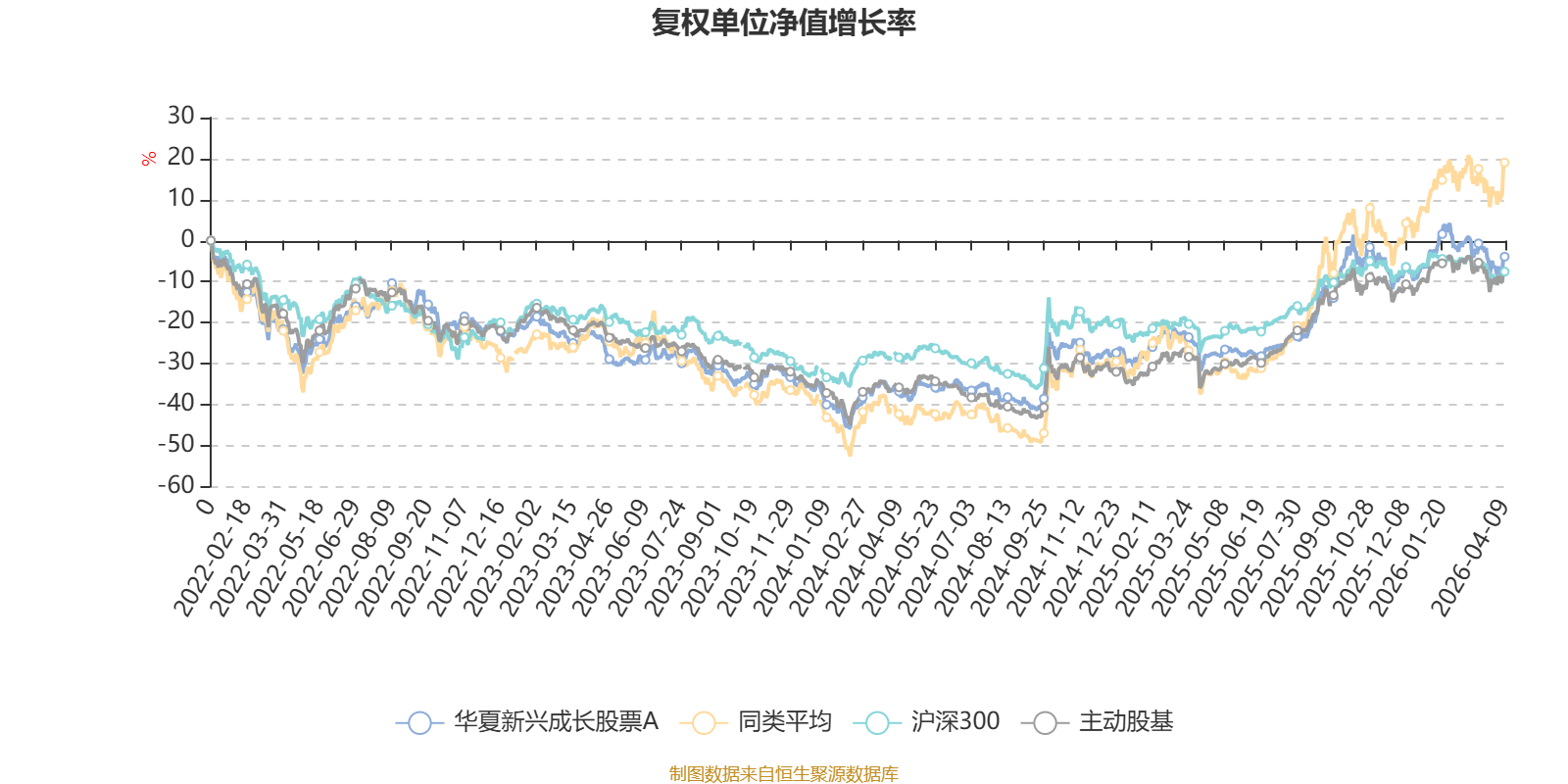 截至4月9日,华夏新兴成长股票A近三个月复权单位净值增长率为-0.96%,位于同类可比基金41/63;近半年复权单位净值增长率为-5.29%,位于同类可比基金51/63;近一年复权单位净值增长率为38.40%,位于同类可比基金51/63;近三年复权单位净值增长率为23.27%,位于同类可比基金36/53。