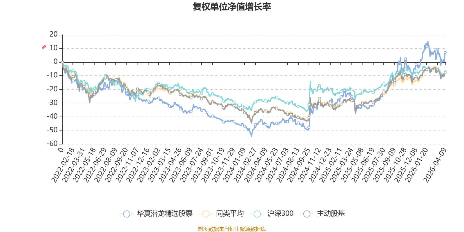 截至4月9日,华夏潜龙精选股票近三个月复权单位净值增长率为-2.19%,位于同类可比基金81/121;近半年复权单位净值增长率为3.22%,位于同类可比基金71/121;近一年复权单位净值增长率为69.38%,位于同类可比基金21/120;近三年复权单位净值增长率为51.64%,位于同类可比基金8/90。