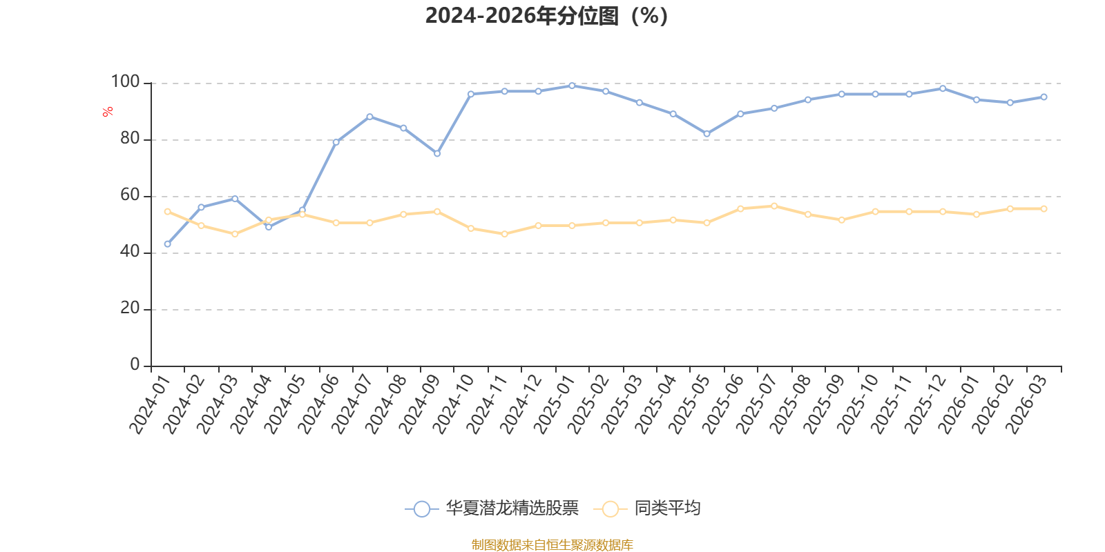 通过所选区间该基金净值增长率分位图,可以观察该基金与同类基金业绩比较情况。图为坐标原点到区间内某时点的净值增长率在同类基金中的分位数。