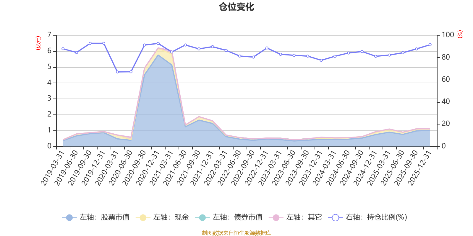 据定期报告数据统计,近三年平均股票仓位为83.51%,同类平均为88.34%。2019年末基金达到92.89%的最高仓位,2020年一季度末最低,为67.11%。