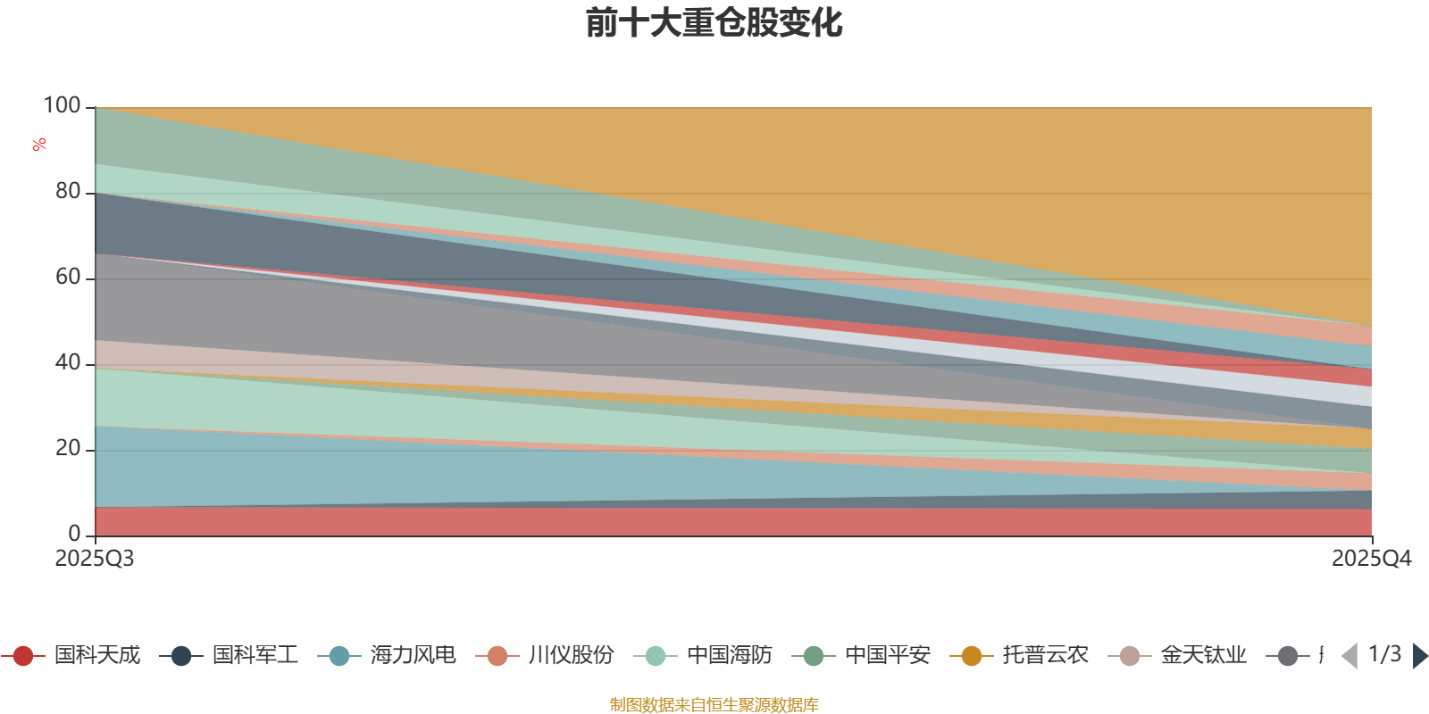 截至2025年末,基金十大重仓股分别是国科天成、中国平安、国泰海通、长江电力、容知日新、国能日新、托普云农、国科军工、川仪股份、悍高集团。
