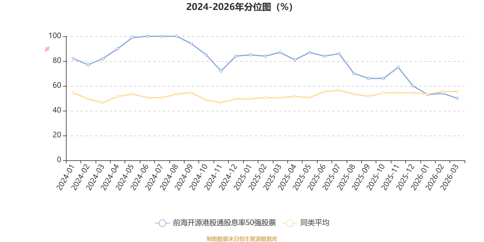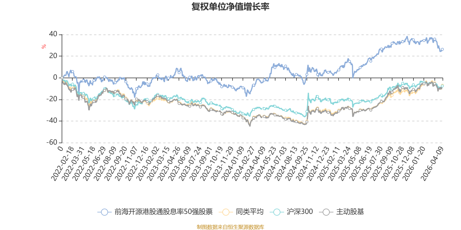 截至4月9日,前海开源港股通股息率50强股票近三个月复权单位净值增长率为-5.68%,位于同类可比基金99/121;近半年复权单位净值增长率为-5.41%,位于同类可比基金98/121;近一年复权单位净值增长率为23.67%,位于同类可比基金83/120;近三年复权单位净值增长率为23.07%,位于同类可比基金36/90。