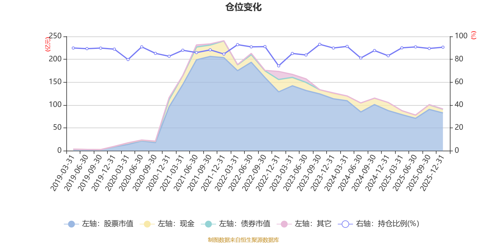 据定期报告数据统计,近三年平均股票仓位为88.01%,同类平均为87.73%。2023年三季度末基金达到93.12%的最高仓位,2022年末最低,为74.28%。