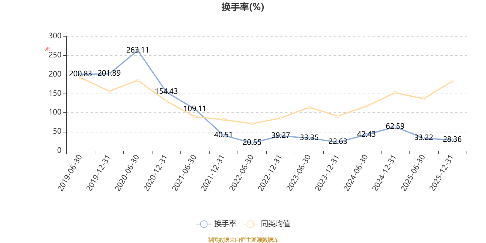截至2025年12月31日,基金最近一年换手率约60.11%,持续4年低于同类均值。
