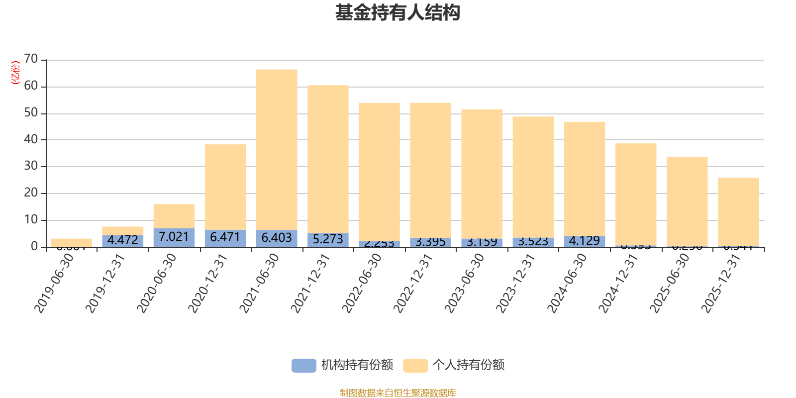 截至2025年12月31日,基金持有人共计57.43万户,合计持有25.89亿份。其中管理人员工持有41.63万份,占比0.02%,机构持有份额占比1.32%,个人投资者占比98.68%。