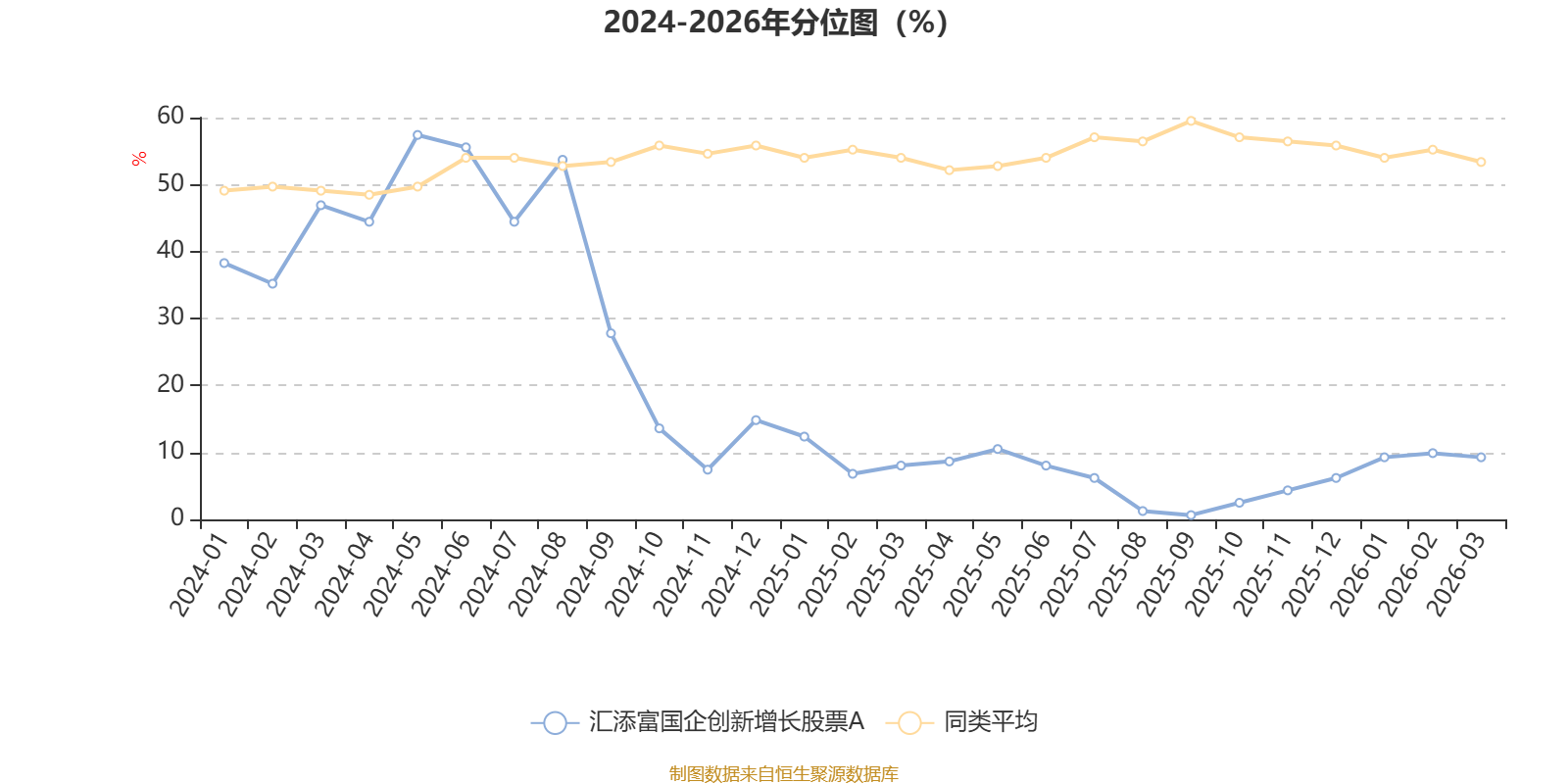 通过所选区间该基金净值增长率分位图,可以观察该基金与同类基金业绩比较情况。图为坐标原点到区间内某时点的净值增长率在同类基金中的分位数。