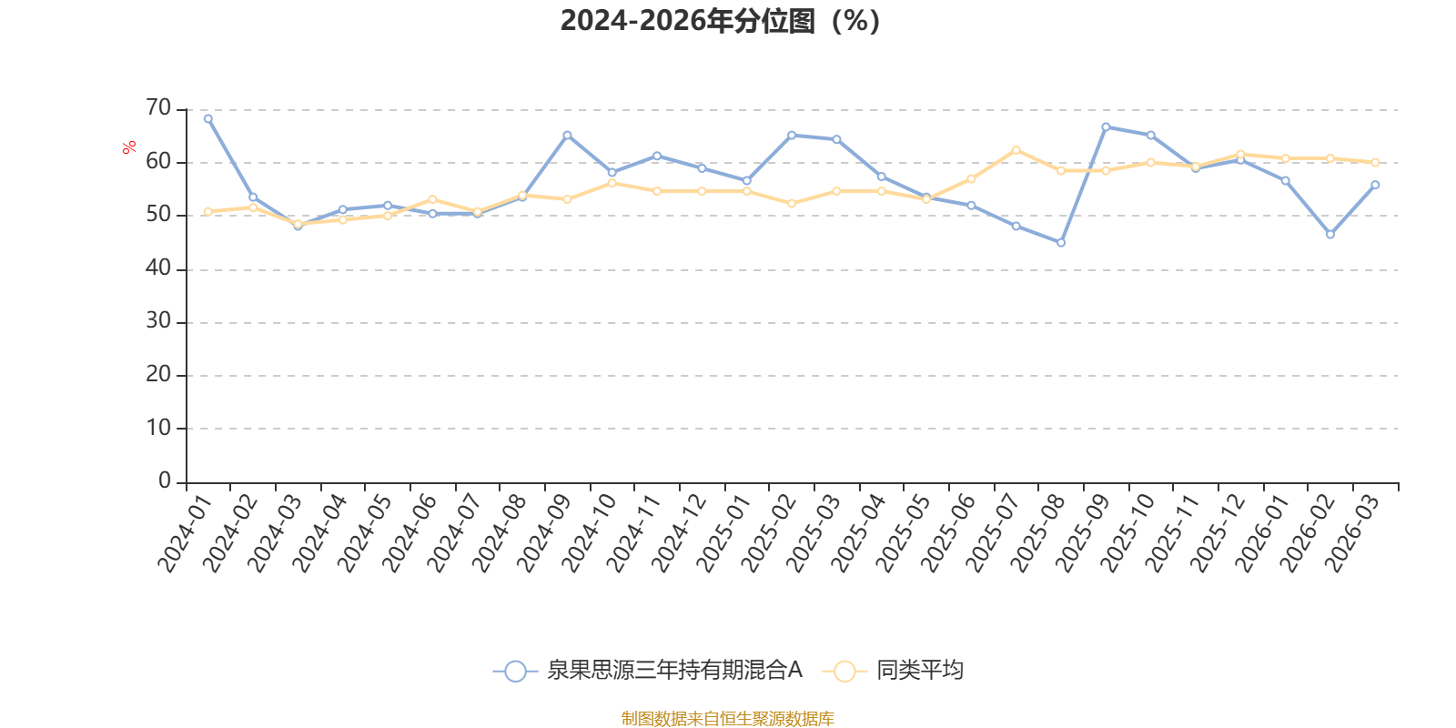 通过所选区间该基金净值增长率分位图,可以观察该基金与同类基金业绩比较情况。图为坐标原点到区间内某时点的净值增长率在同类基金中的分位数。