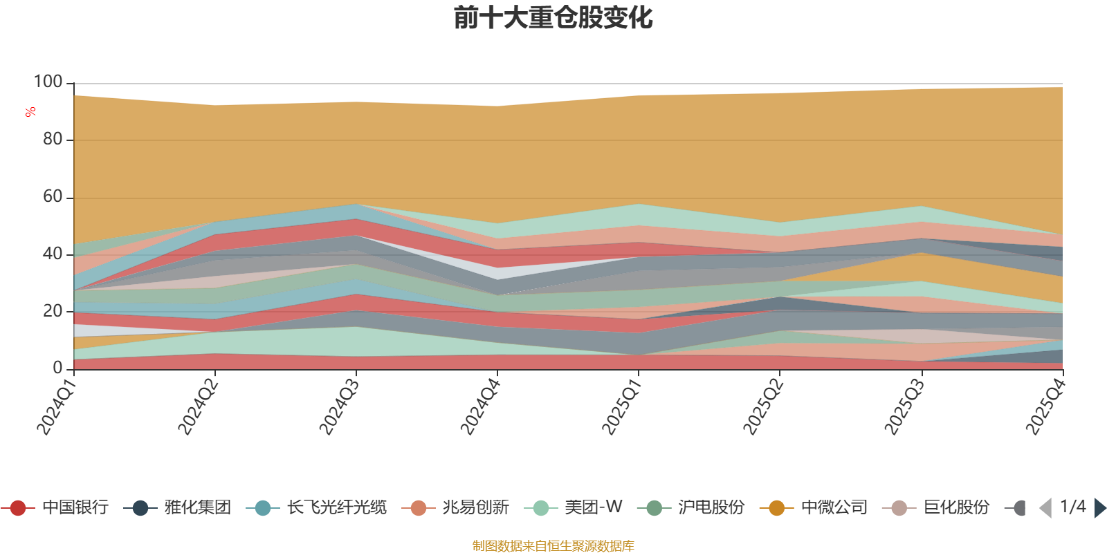 截至2025年末,基金十大重仓股分别是新易盛、中国石油、永兴材料、雅化集团、中国宏桥、华友钴业、紫金矿业、华虹半导体、长飞光纤光缆、中国银行。