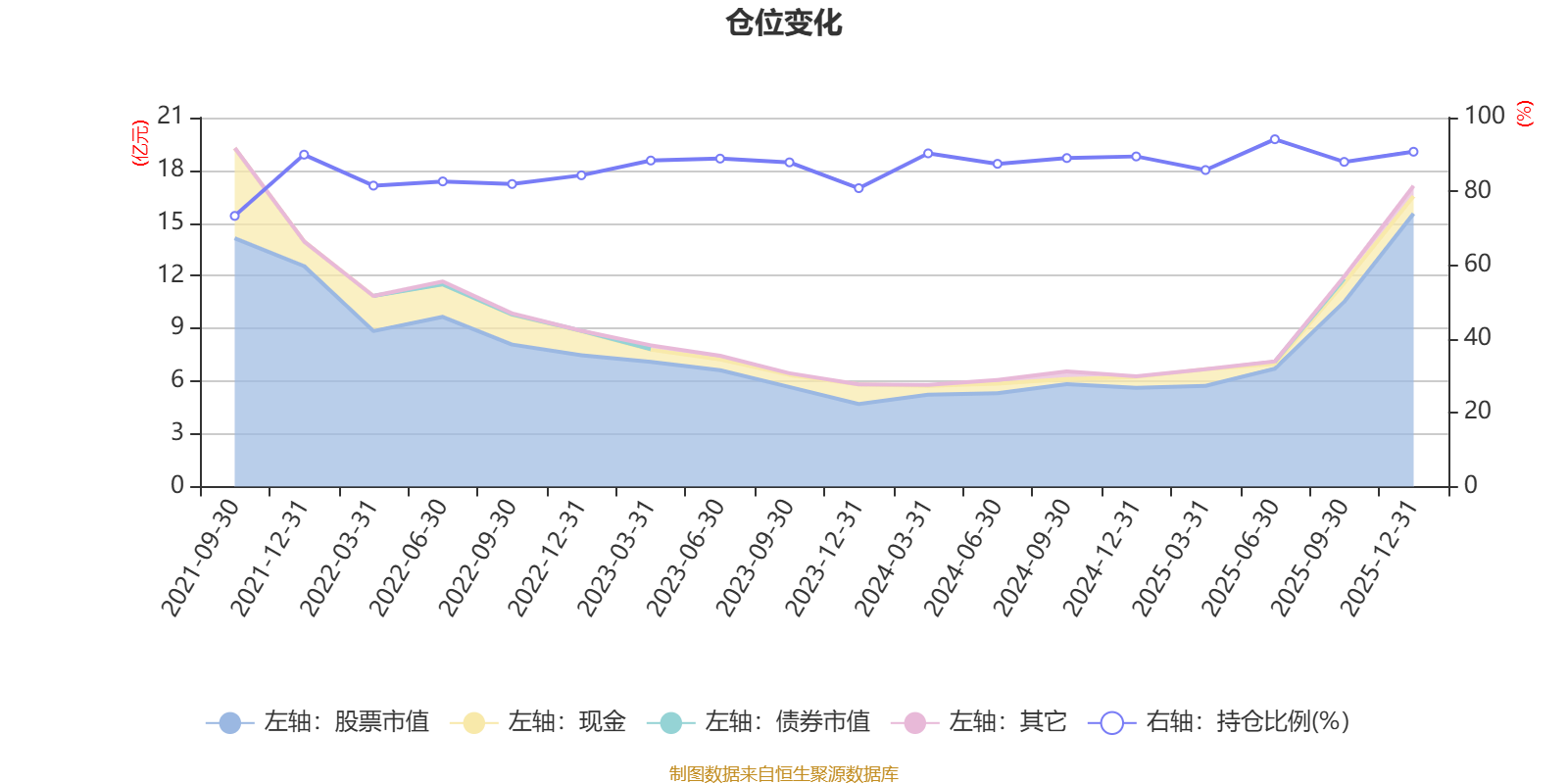 据定期报告数据统计,近三年平均股票仓位为88.41%,同类平均为88.27%。2025年上半年末基金达到94.13%的最高仓位,2021年三季度末最低,为73.36%。