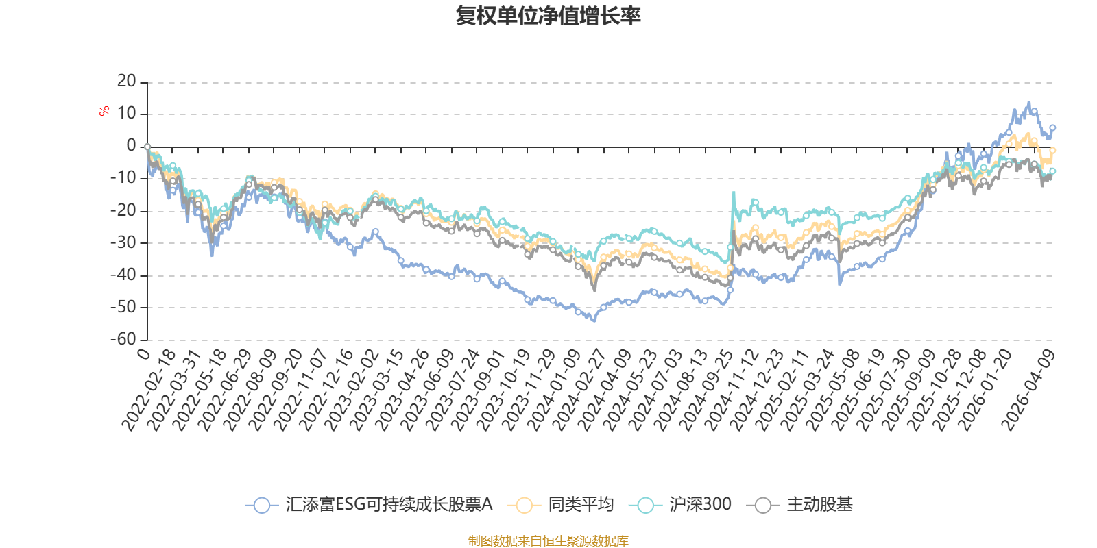 截至4月9日,汇添富ESG可持续成长股票A近三个月复权单位净值增长率为2.58%,位于同类可比基金39/167;近半年复权单位净值增长率为7.59%,位于同类可比基金43/167;近一年复权单位净值增长率为81.00%,位于同类可比基金14/165;近三年复权单位净值增长率为67.09%,位于同类可比基金9/157。