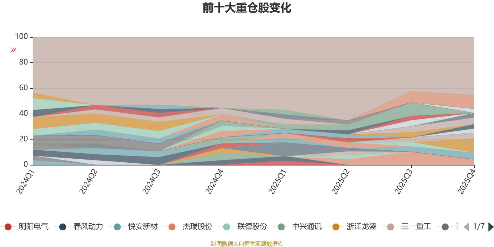截至2025年末,基金十大重仓股分别是盐湖股份、利安隆、法兰泰克、中国巨石、永创智能、杰瑞股份、鼎胜新材、久立特材、一拖股份、中信特钢。