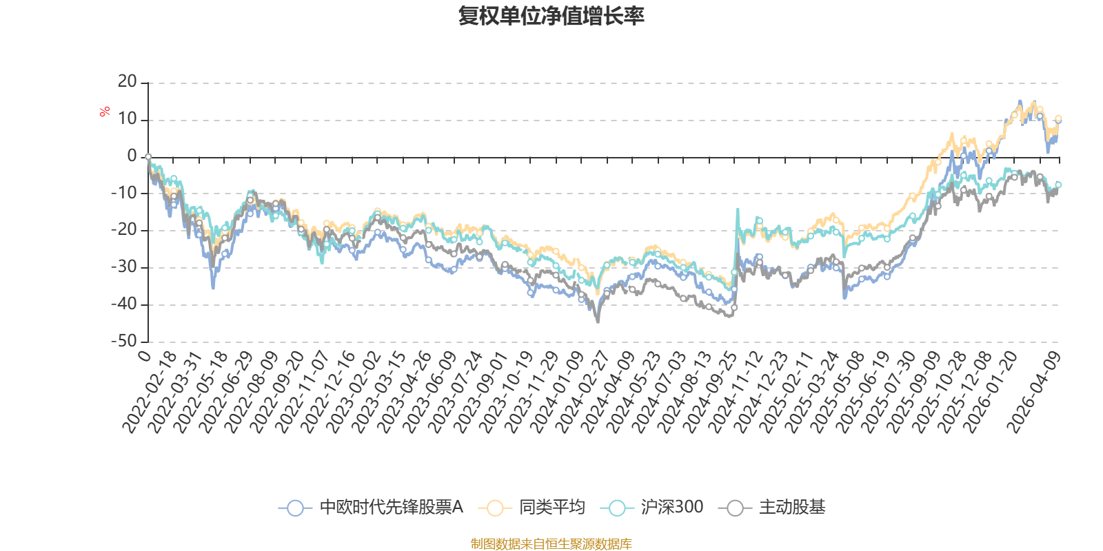 截至4月9日,中欧时代先锋股票A近三个月复权单位净值增长率为-0.04%,位于同类可比基金29/58;近半年复权单位净值增长率为7.86%,位于同类可比基金11/58;近一年复权单位净值增长率为76.18%,位于同类可比基金8/57;近三年复权单位净值增长率为43.15%,位于同类可比基金13/57。
