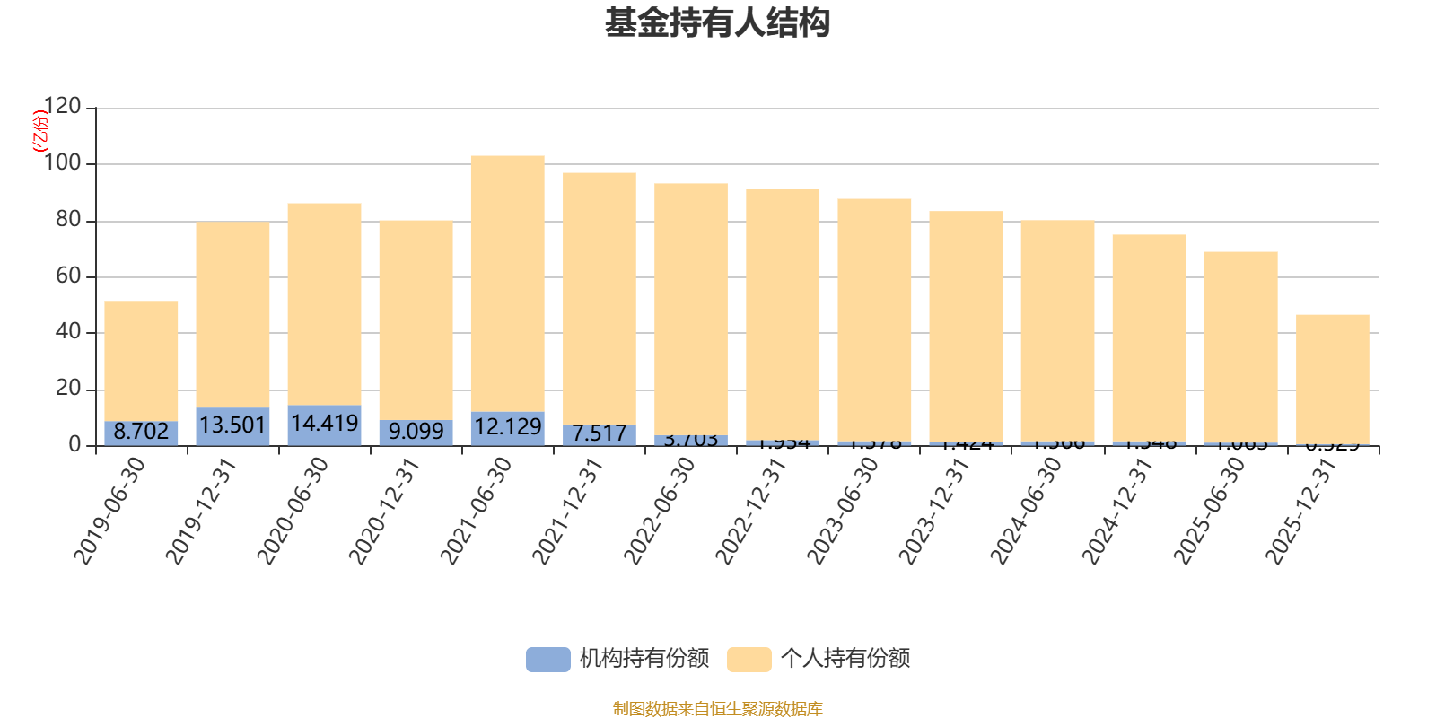 截至2025年12月31日,基金持有人共计77.13万户,合计持有46.48亿份。其中管理人员工持有130.34万份,占比0.03%,机构持有份额占比1.14%,个人投资者占比98.86%。