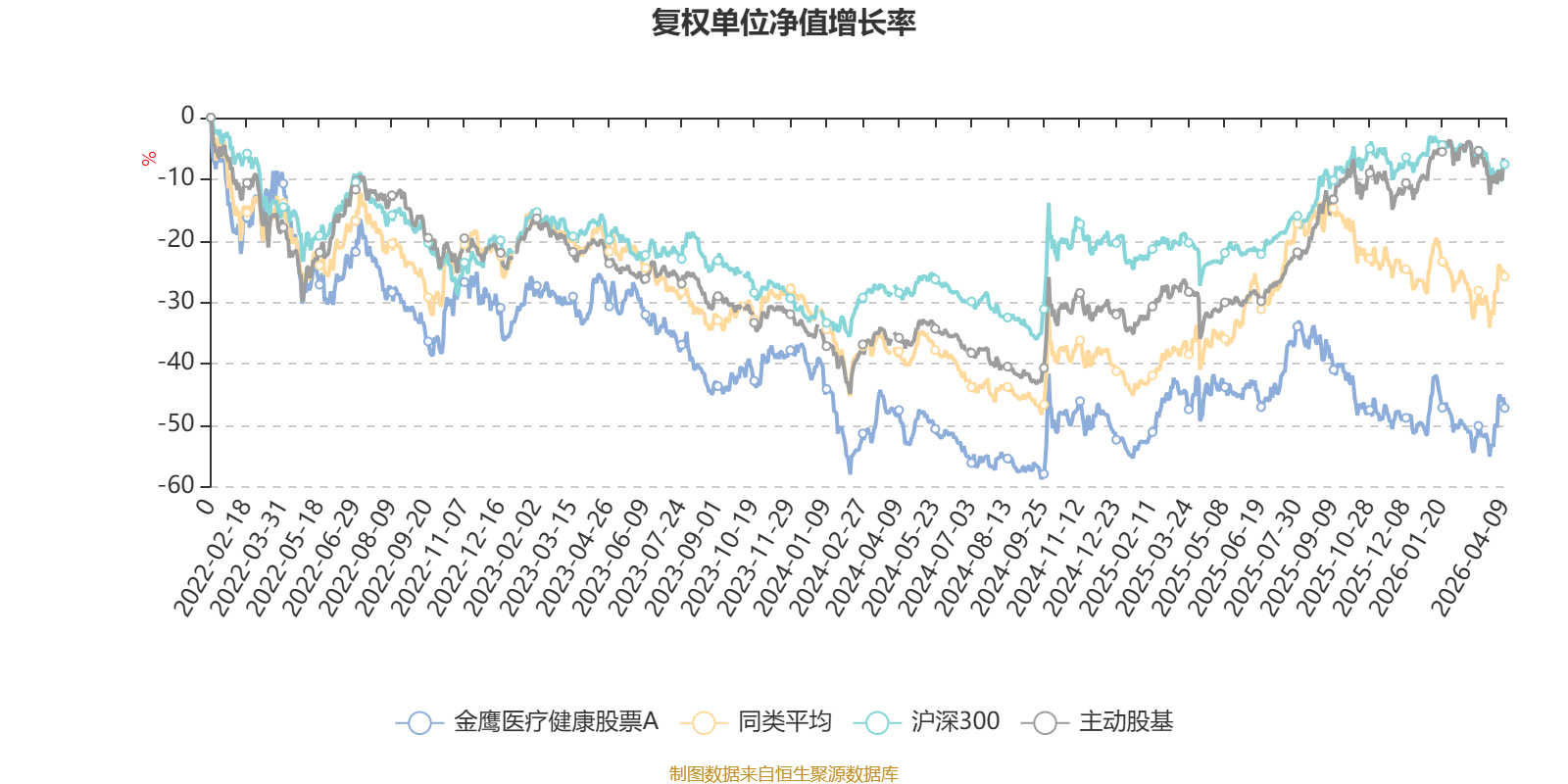 截至4月9日,金鹰医疗健康股票A近三个月复权单位净值增长率为-8.69%,位于同类可比基金40/57;近半年复权单位净值增长率为-6.65%,位于同类可比基金12/57;近一年复权单位净值增长率为1.98%,位于同类可比基金51/57;近三年复权单位净值增长率为-27.80%,位于同类可比基金42/48。