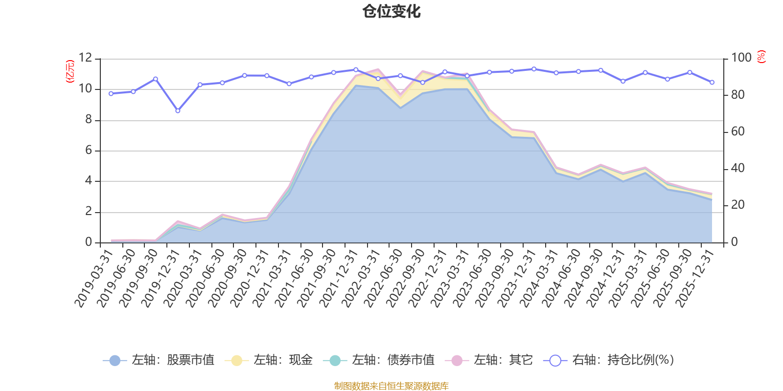 据定期报告数据统计,近三年平均股票仓位为91.55%,同类平均为88.23%。2023年末基金达到94.38%的最高仓位,2019年末最低,为71.69%。